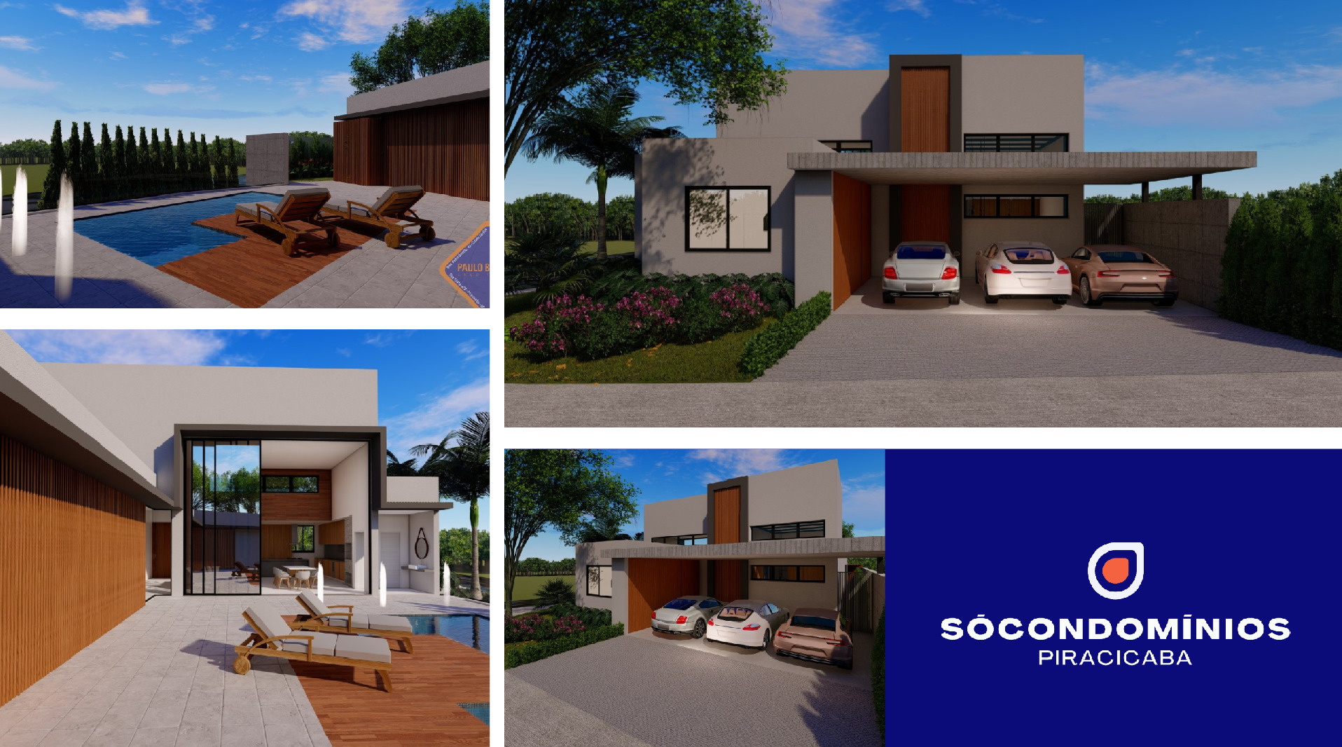 Quartos com portas balcão de alumínio automatizadas com controle remoto e blackout. Sala home cinema, cozinha com ilha e despensa, área gourmet com churrasqueira e piscina.