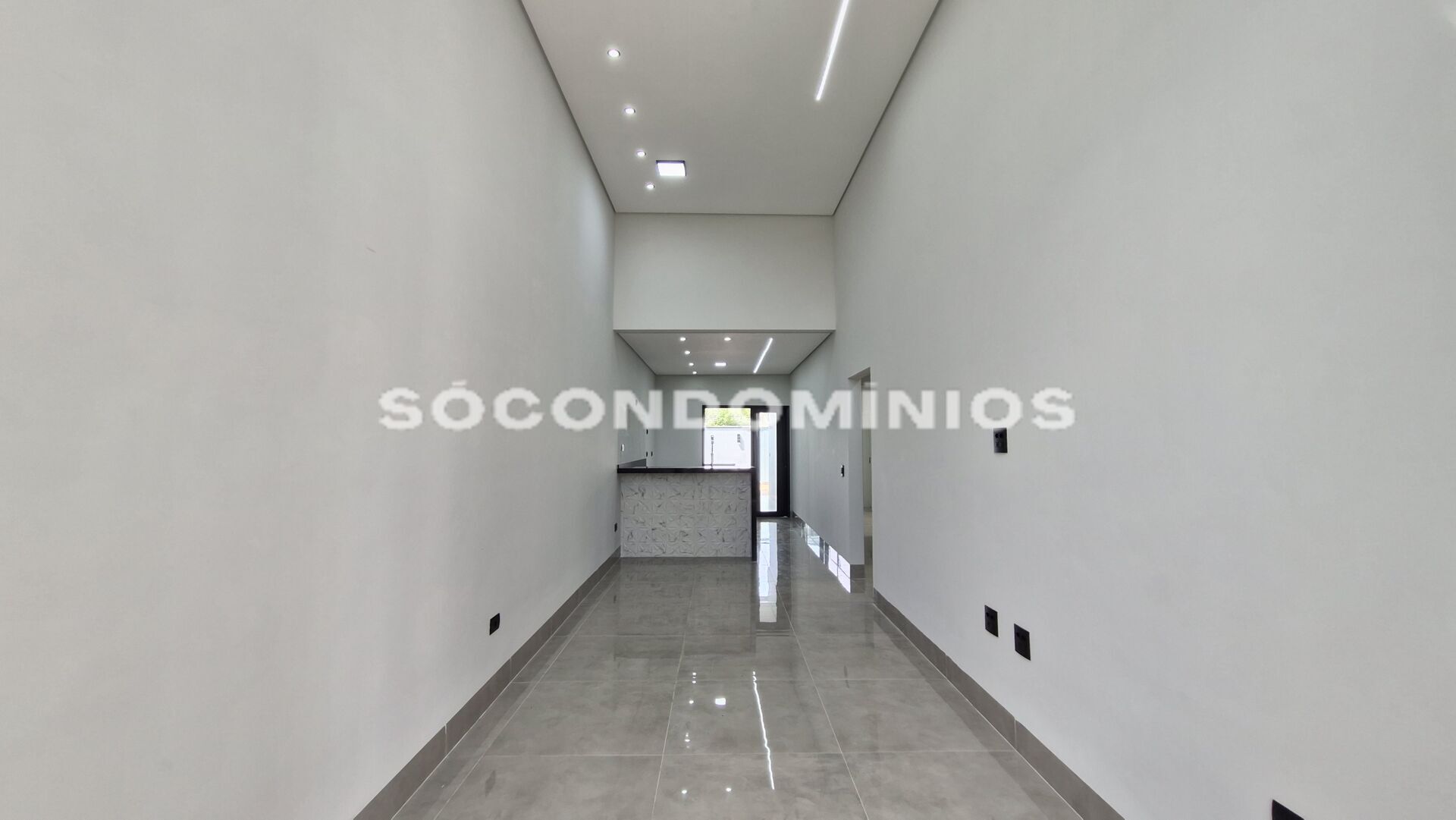 - Sala dois ambientes, tv e jantar com pé direito duplo