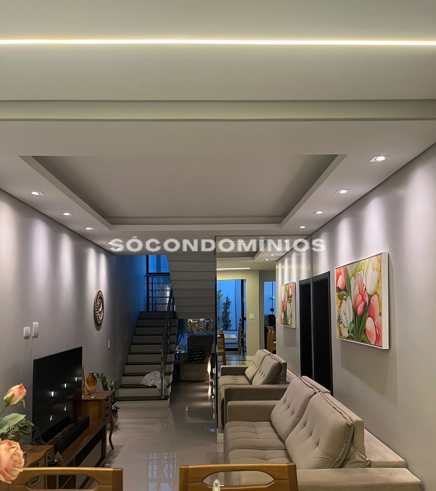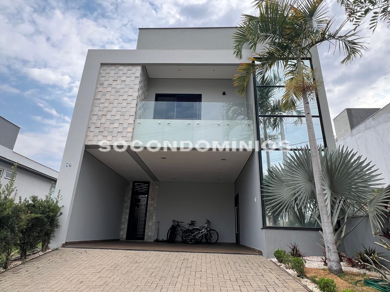 Sobrado moderno com 3 suítes sendo duas com closet e todas com varanda.