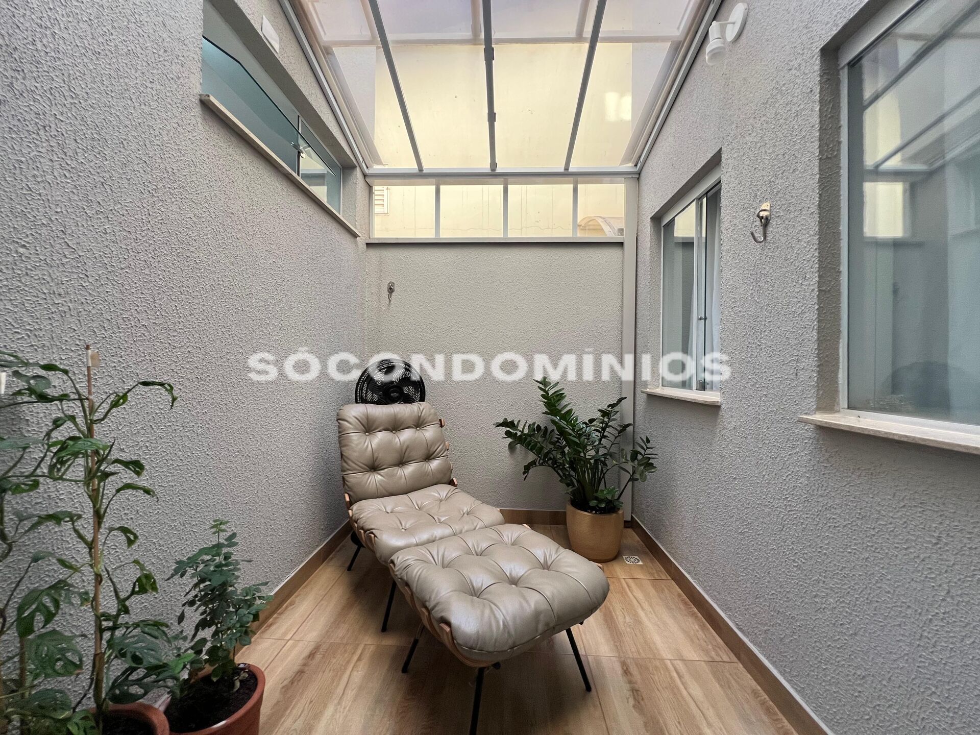 área de luz fechada com blindex e coberta