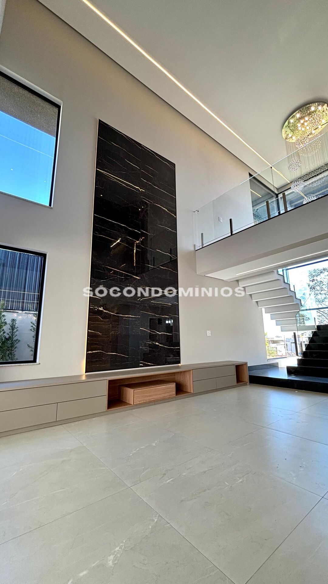 E mais: fotovoltáica, persinanas elétricas, adega e cascata revestida em mármore escovado.