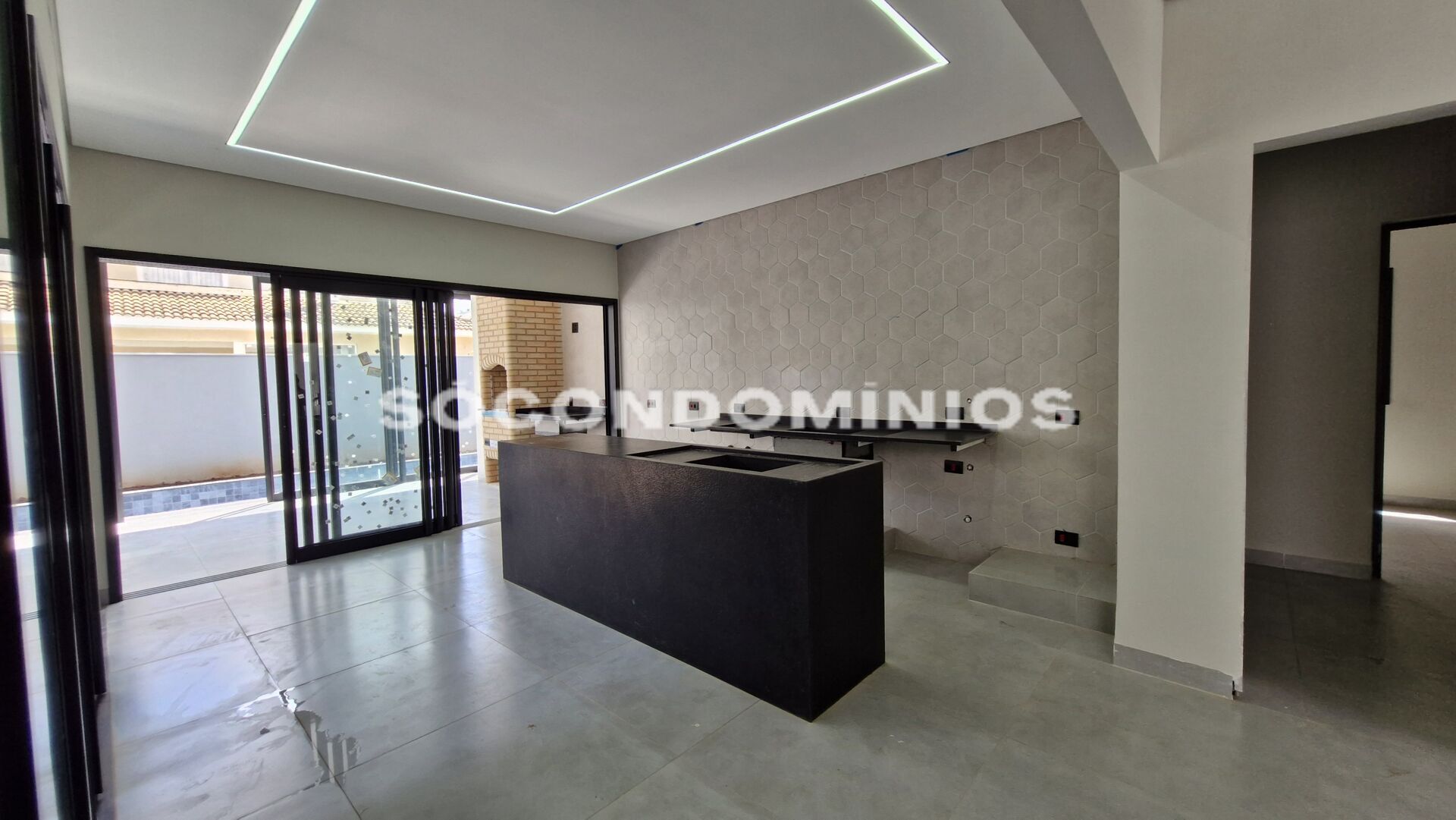 * Área gourmet com área verde e fireplace