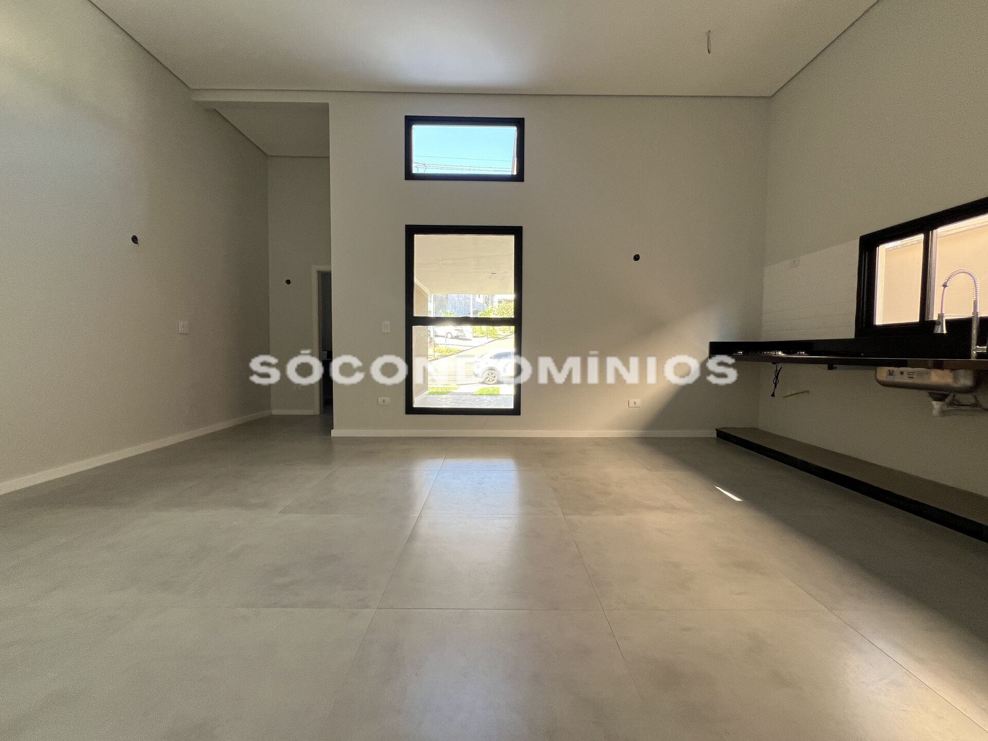Sala integrada com a cozinha e com cooktop;