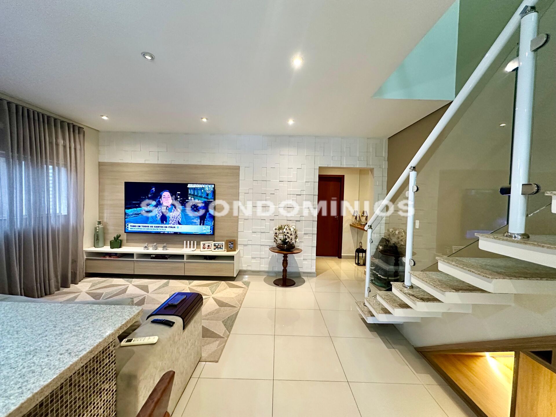 Sala climatizada, cortinas sob medida;