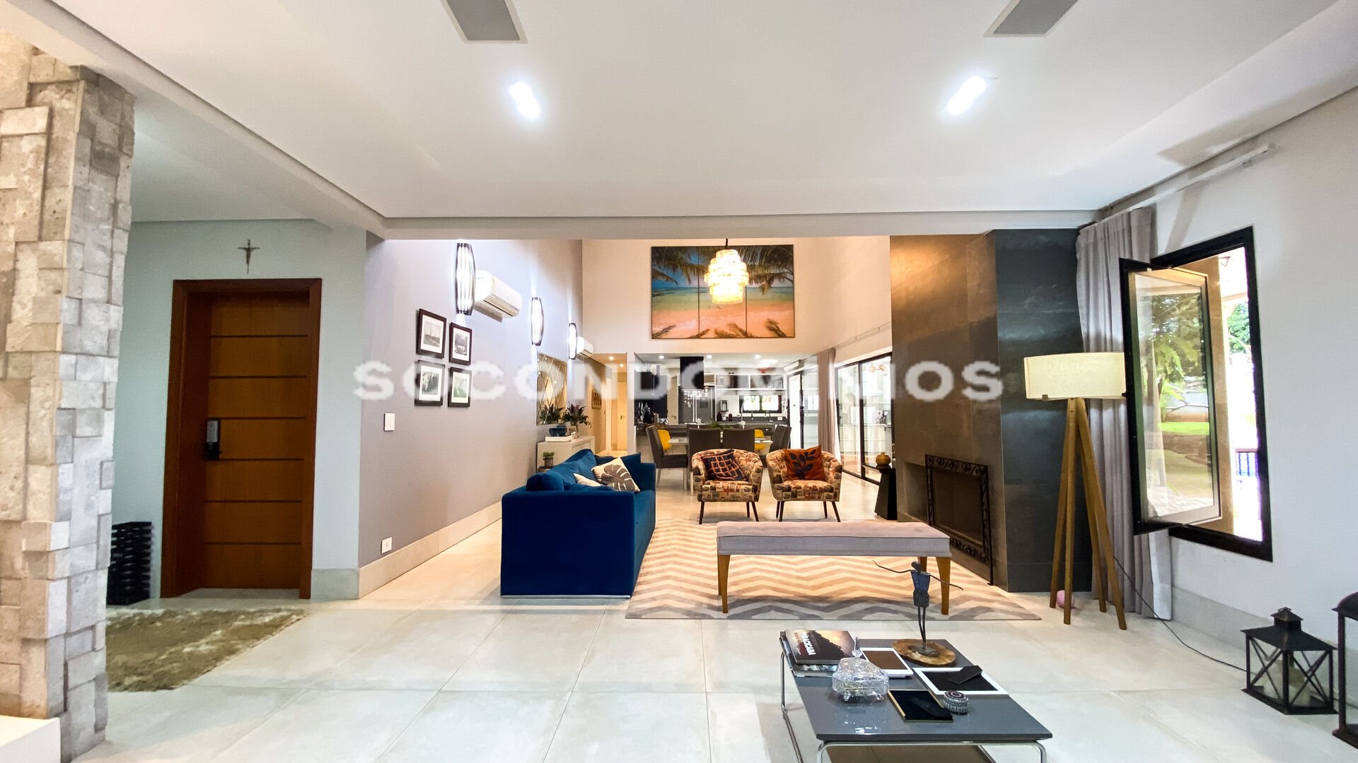 Sala ampla com lareira