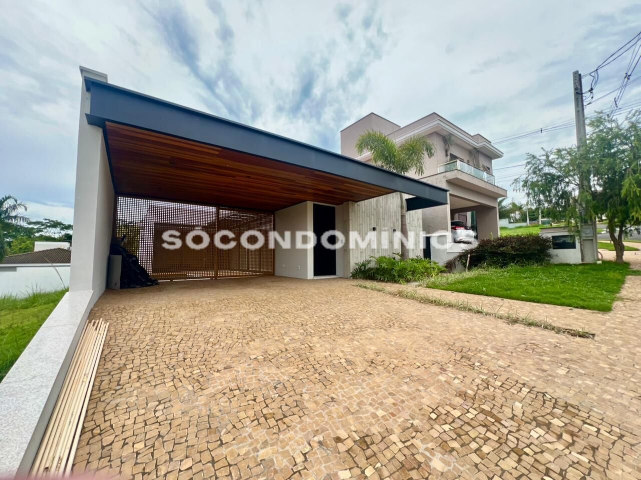 Residência térrea em estilo contemporânea brasileira composta por 04 vagas de garagem (sendo 02 cobertas), hall de entrada, cozinha gourmet, sala estar, home office, lavabo com chuveiro (atende área social/piscina/home office); 03 suítes com closet (sendo 01 máster com sala de banho), lavanderia, piscina aquecida.