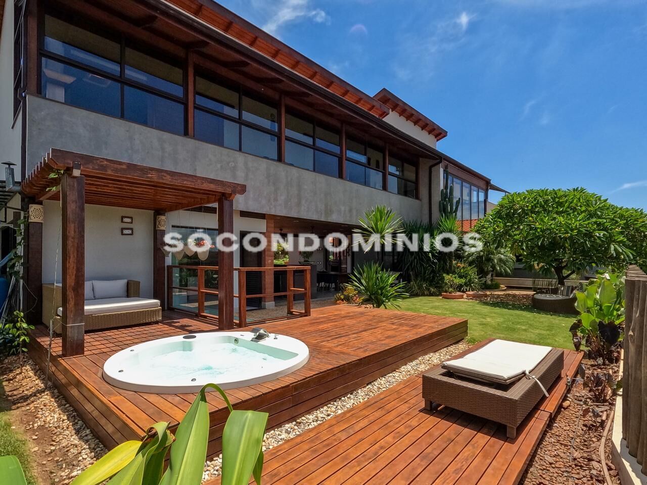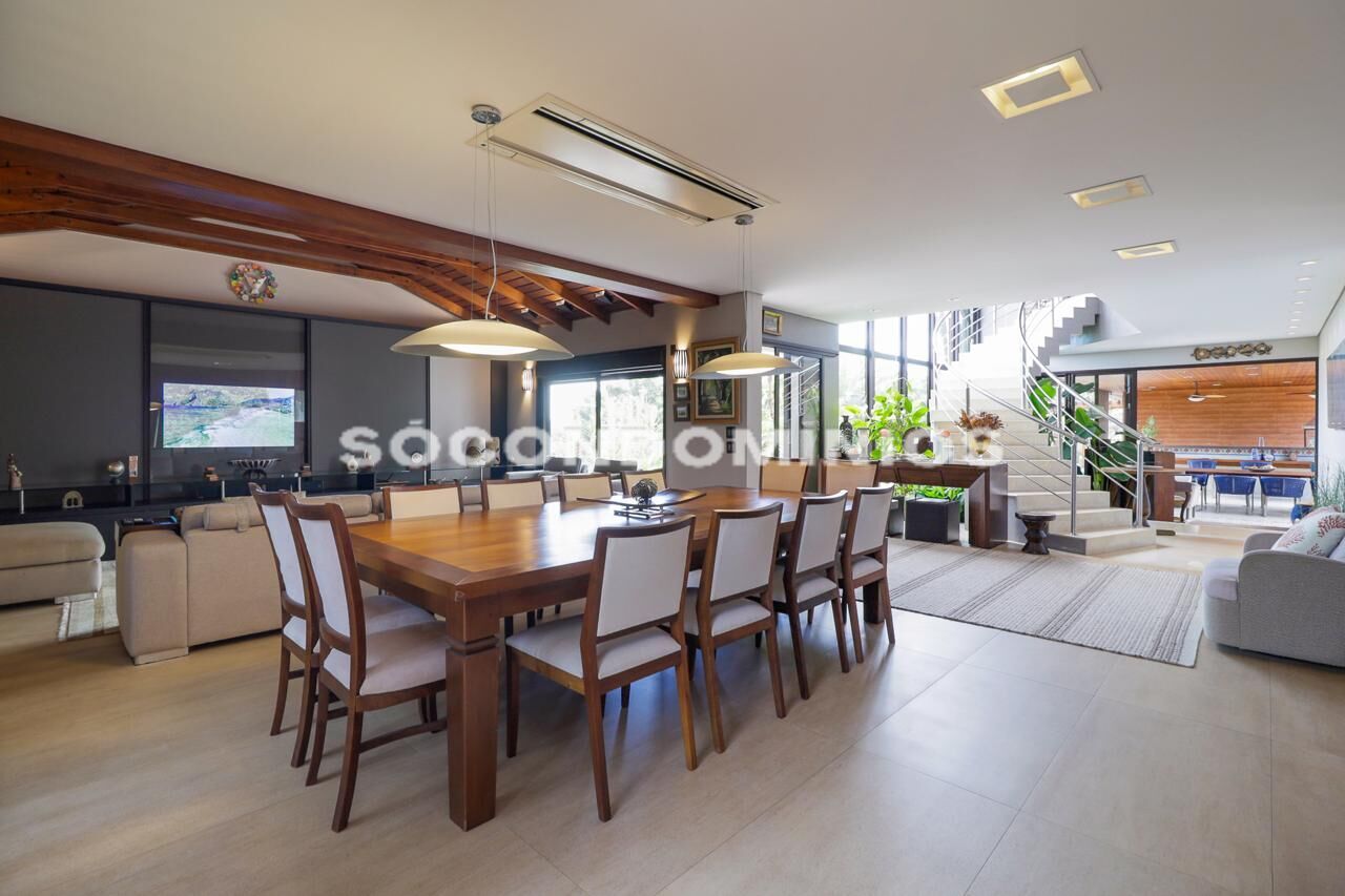 Conta com 4 amplas suítes, sendo 1 delas no térreo, walking adega e escritório. Com ambientes espaçosos, bem iluminados e integrados, a casa oferece uma atmosfera moderna e acolhedora. Equipada com energia fotovoltaica, aquecimento solar, sistema de refrigeração central e captação de água de chuva. A área externa inclui um charmoso lago ornamental com peixes, complementando a decoração, além de um Spa com massagem e cromoterapia, sauna, piscina e um paisagismo deslumbrante.