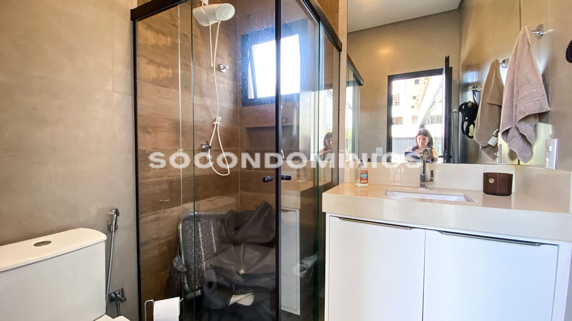 1 banheiro social e 1 externo. Depósito. Lavanderia. Laje técnica para AC.